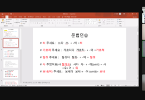 알제리 청년들이 한국의 청소년 봉사자들과 함께 한글 교재에 나와있는 대본을 따라 말하기 연습을 하는 수업이었어요.