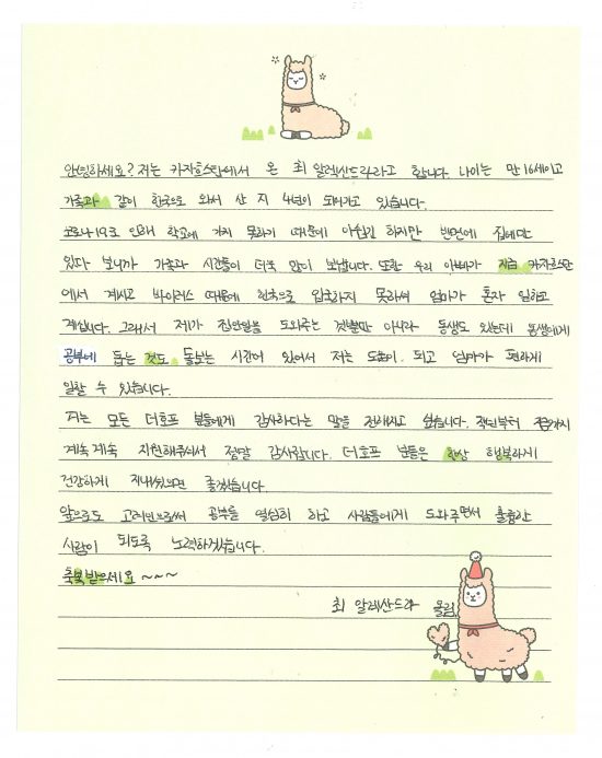 화학 선생님을 통해 단순한 물질들이 서로 섞여 새로운 것이 창조되는 것을 배우고, 음악 선생님을 통해 세상을 위로할 사랑의 소리를 내는 법을 배운 제자들이 함께 모였어요. 코로나 시대에 세상과 단절된 보육원, 장애인센터 및 난민들에게 보내질 물건들을…